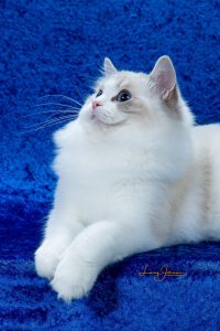 This is magnificent Riterags Rebekah Darling! She is exquisite and a blue bicolor ! Number one kitten in TICA in the Sout East Region when she was number one best ragdoll. Big beautiful friendily will want to be with you every where.